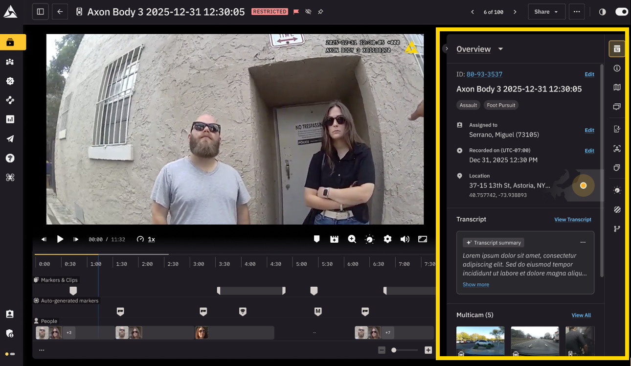 Digitale Beweise bringen nicht nur Klarheit, sondern helfen uns, Geschichten zu verstehen, nachzuvollziehen und zu vervollständigen – Geschichten, die zur Wahrheit und Gerechtigkeit führen. Um Behörden dabei zu helfen, diese Geschichten schneller und effizienter zu verbinden, haben wir Axon Evidence neu gestaltet. Basierend auf Kundenfeedback und in Zusammenarbeit mit Hunderten von Behörden entwickelt, markiert dieses Redesign den Beginn einer neuen Ära für Axon Evidence – mit Fokus auf fünf Kernbereiche: Navigation, Suche, Beweisdarstellung, Media Player und Admin-Bereich. Zusammen bringen diese Verbesserungen Dutzende von Neuerungen – große und kleine.