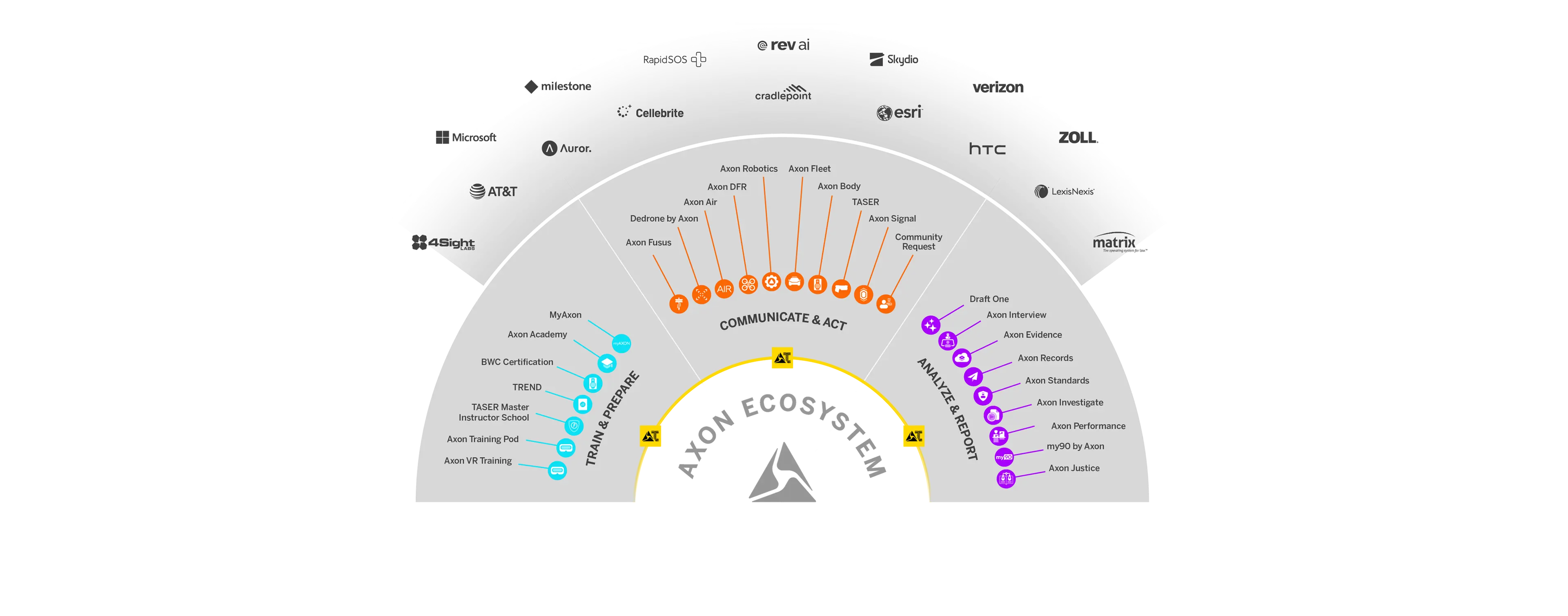 The Axon Ecosystem is a connected network of hardware, software and sensor solutions that work together to protect more lives in more places. This technology suite drives greater safety, efficiency and visibility for both officers and the communities they serve.