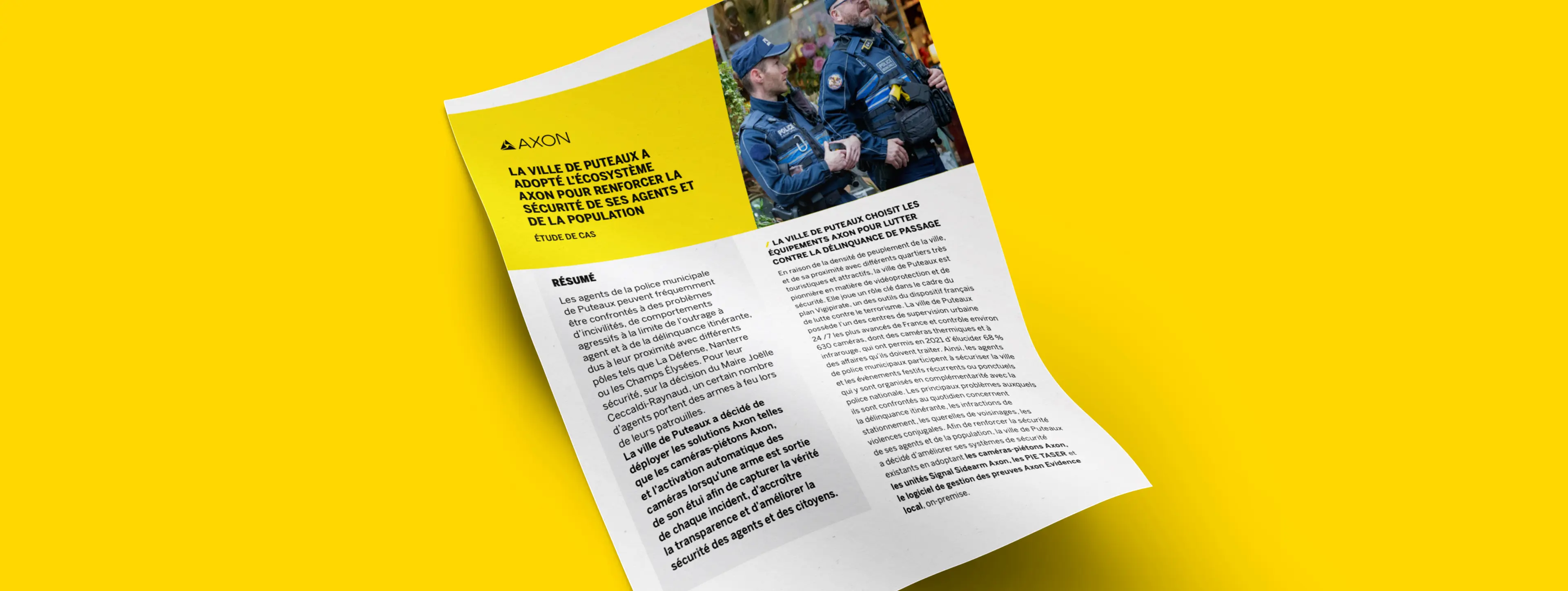 Les agents de la police municipale de Puteaux peuvent fréquemment être confrontés à des problèmes d’incivilités, de comportements agressifs à la limite de l’outrage à agent et à de la délinquance itinérante, dus à leur proximité avec différents pôles tels que La Défense, Nanterre ou les Champs Élysées. Pour leur sécurité, sur la décision du Maire Joëlle Ceccaldi-Raynaud, un certain nombre d’agents portent des armes à feu lors de leurs patrouilles. La ville de Puteaux a décidé de déployer les solutions Axon telles que les caméras-piétons Axon, et l’activation automatique des caméras lorsqu’une arme est sortie de son étui afin de capturer la vérité de chaque incident, d’accroître la transparence et d’améliorer la sécurité des agents et des citoyens.