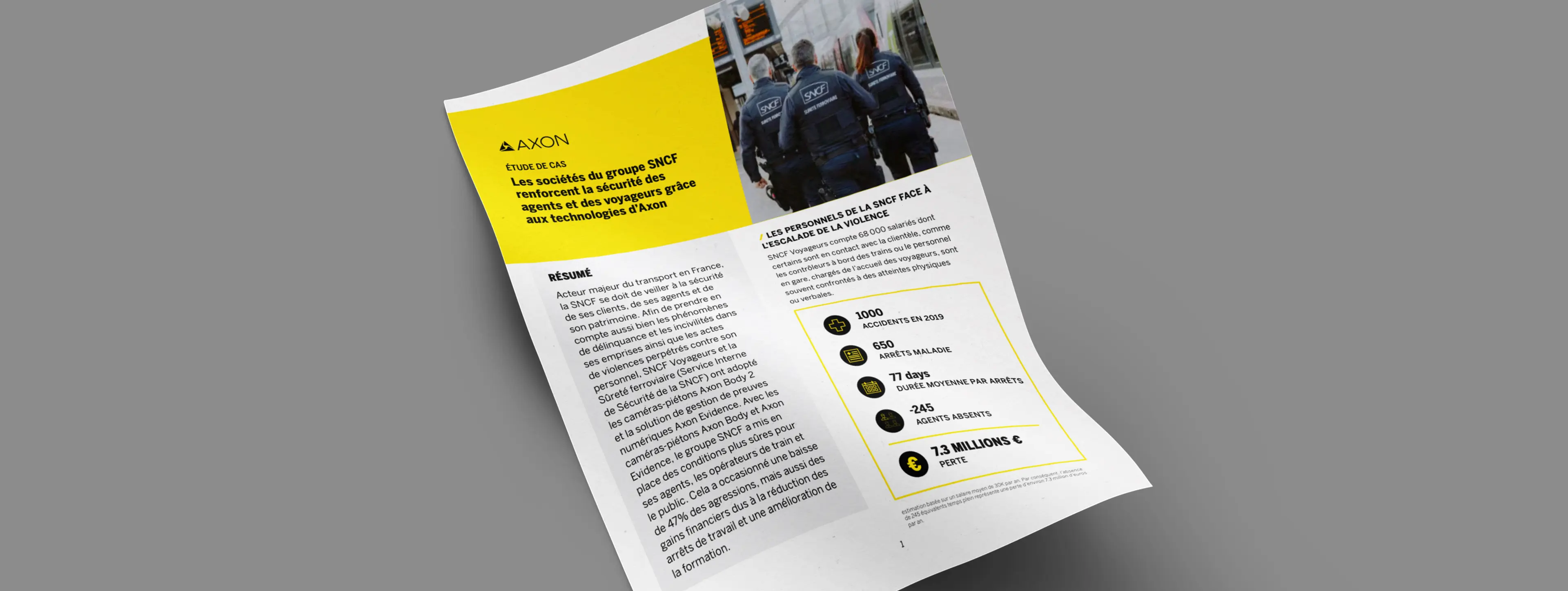 Acteur majeur du transport en France, la SNCF se doit de veiller à la sécurité de ses clients, de ses agents et de son patrimoine. Afin de prendre en compte aussi bien les phénomènes de délinquance et les incivilités dans ses emprises ainsi que les actes de violences perpétrés contre son personnel, SNCF Voyageurs et la Sûreté ferroviaire (Service Interne de Sécurité de la SNCF) ont adopté les caméras-piétons Axon Body 2 et la solution de gestion de preuves numériques Axon Evidence. Avec les caméras-piétons Axon Body et Axon Evidence, le groupe SNCF a mis en place des conditions plus sûres pour ses agents, les opérateurs de train et le public. Cela a occasionné une baisse de 47% des agressions, mais aussi des gains financiers dus à la réduction des arrêts de travail et une amélioration de la formation.