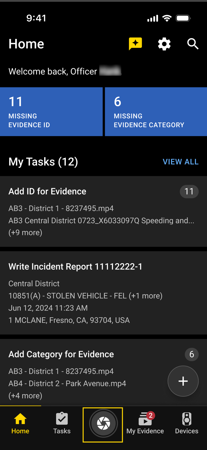 - In Axon Evidence the uploaded evidence will be assigned to the user who is signed in at the time of upload. When using a shared device, ensure your evidence is uploaded before checking in or handing off the device.