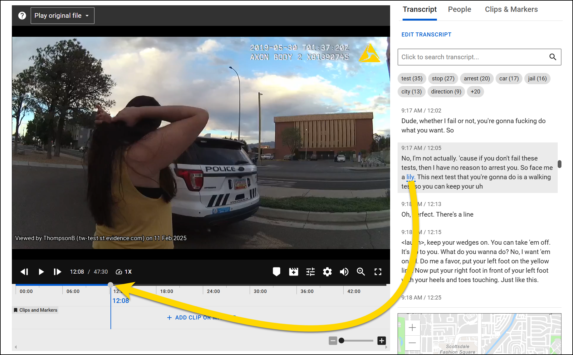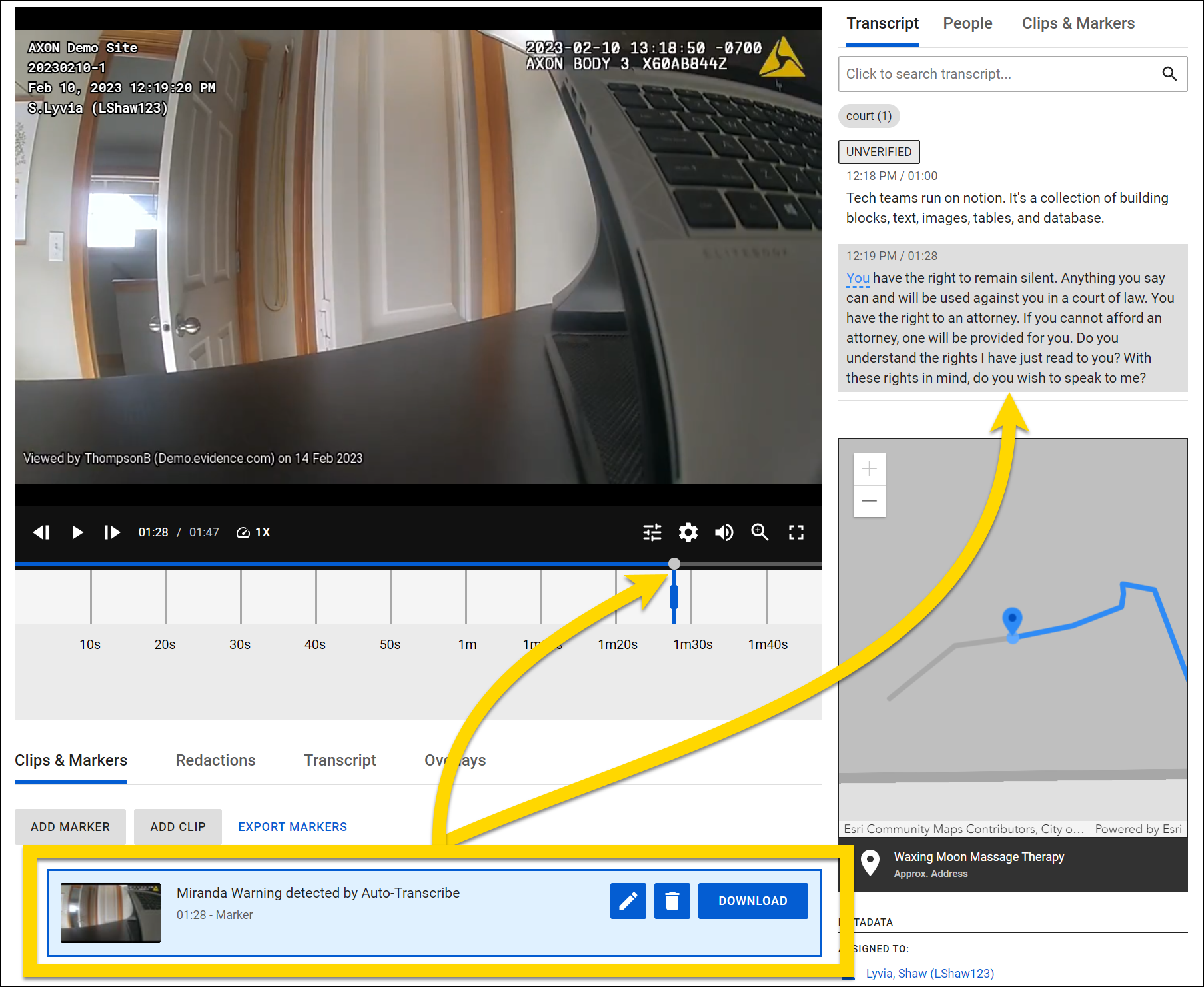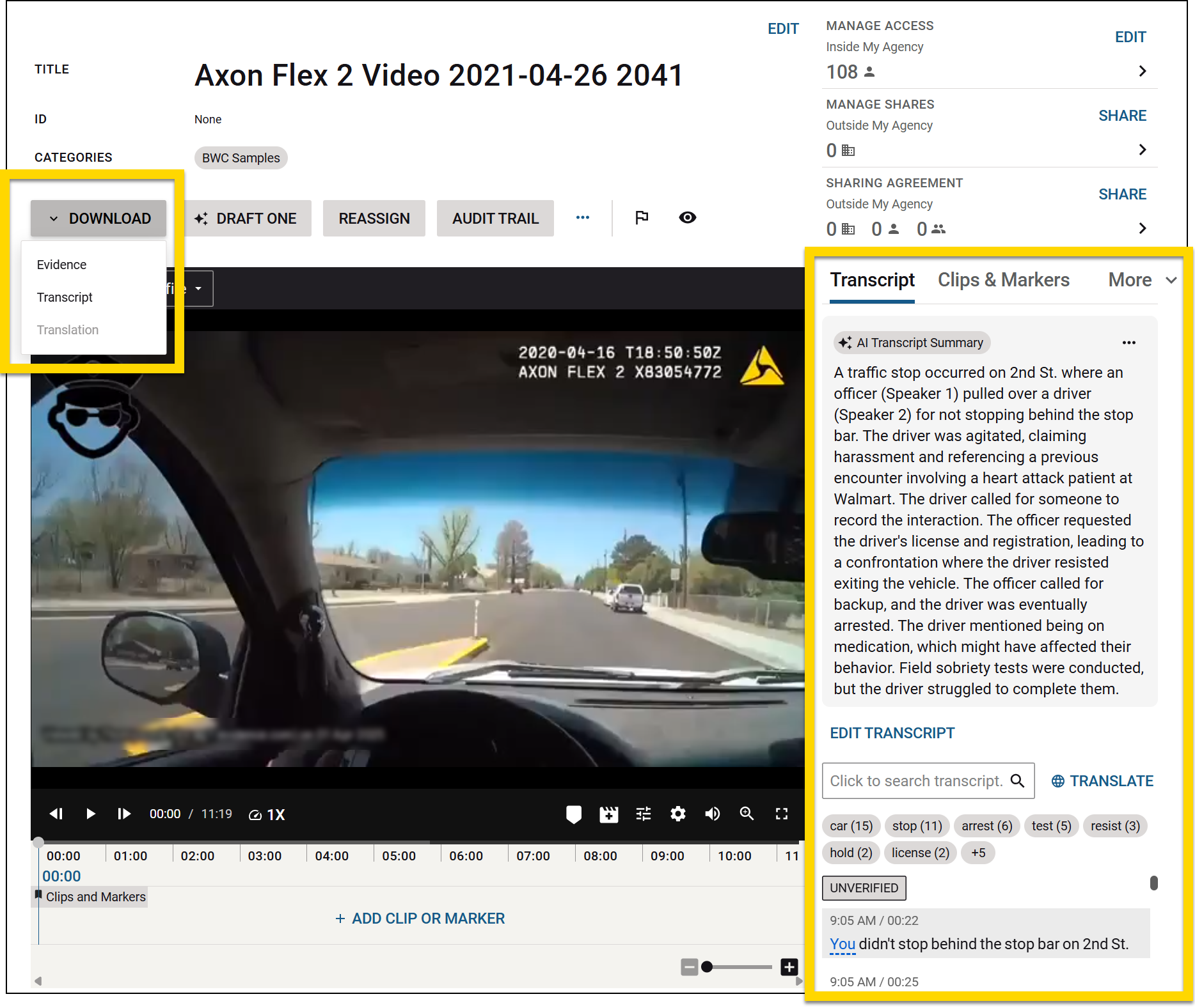 Watch this video (starting at 03:07) to learn how to view the transcript on the Evidence Detail Page.