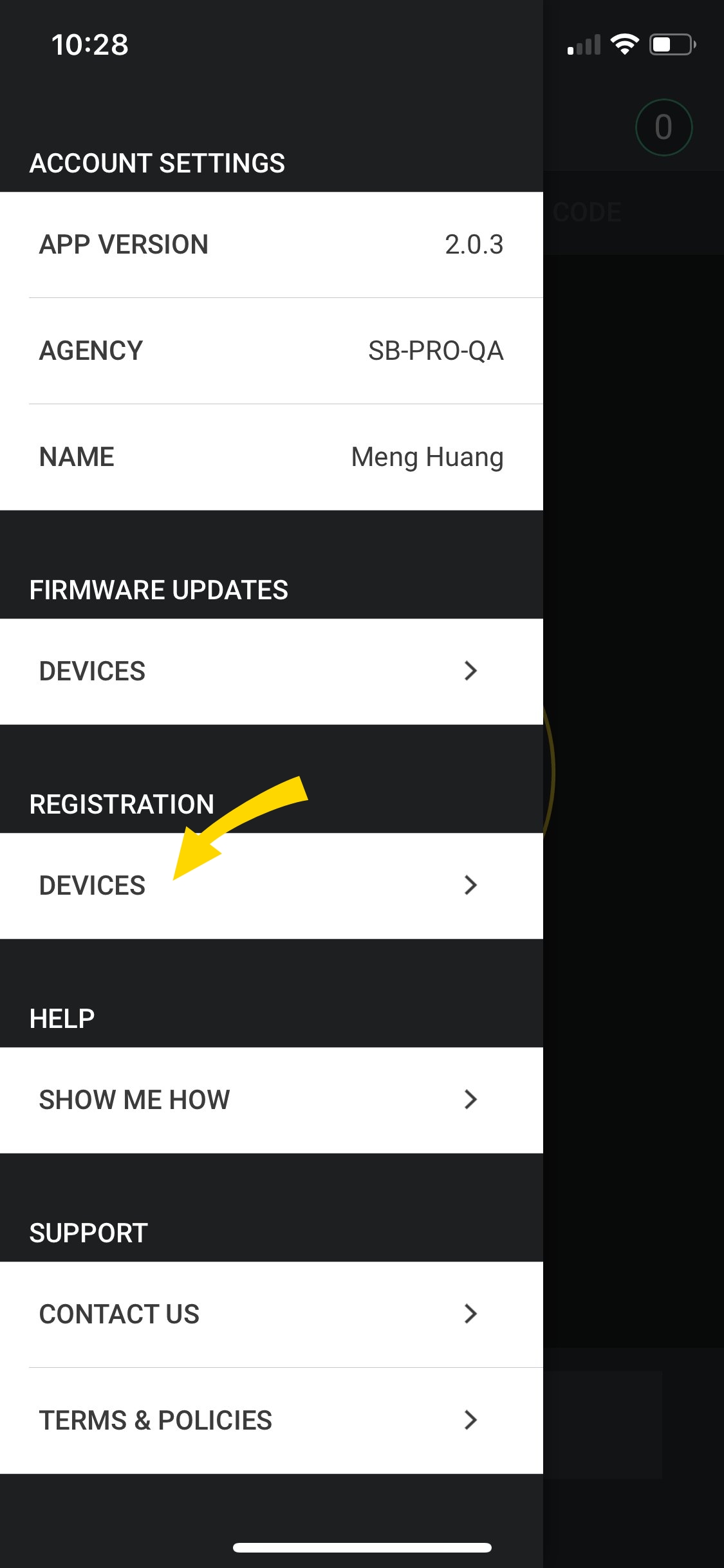 • Press Select (between the volume buttons) on each camera to proceed with the registration.