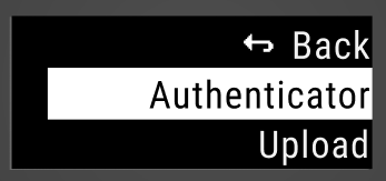 4. Press Power and Program (below Volume down q) simultaneously to open the menu, press Volume down q to reach Authenticator, then press Select.