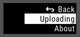 The diagnostic menu option changes from Upload to Uploading when an upload is in progress.