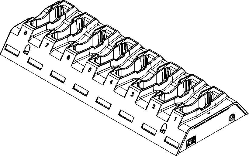 There are two types of Axon Body 3 Docks: an 8-bay dock and a 1-bay dock.