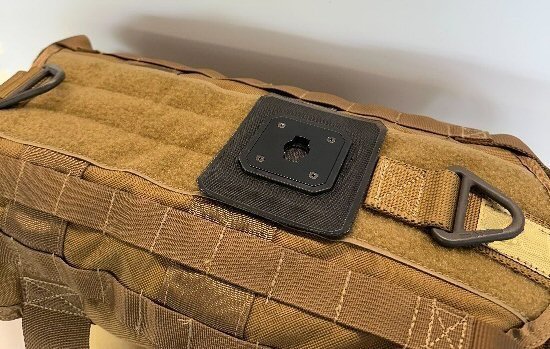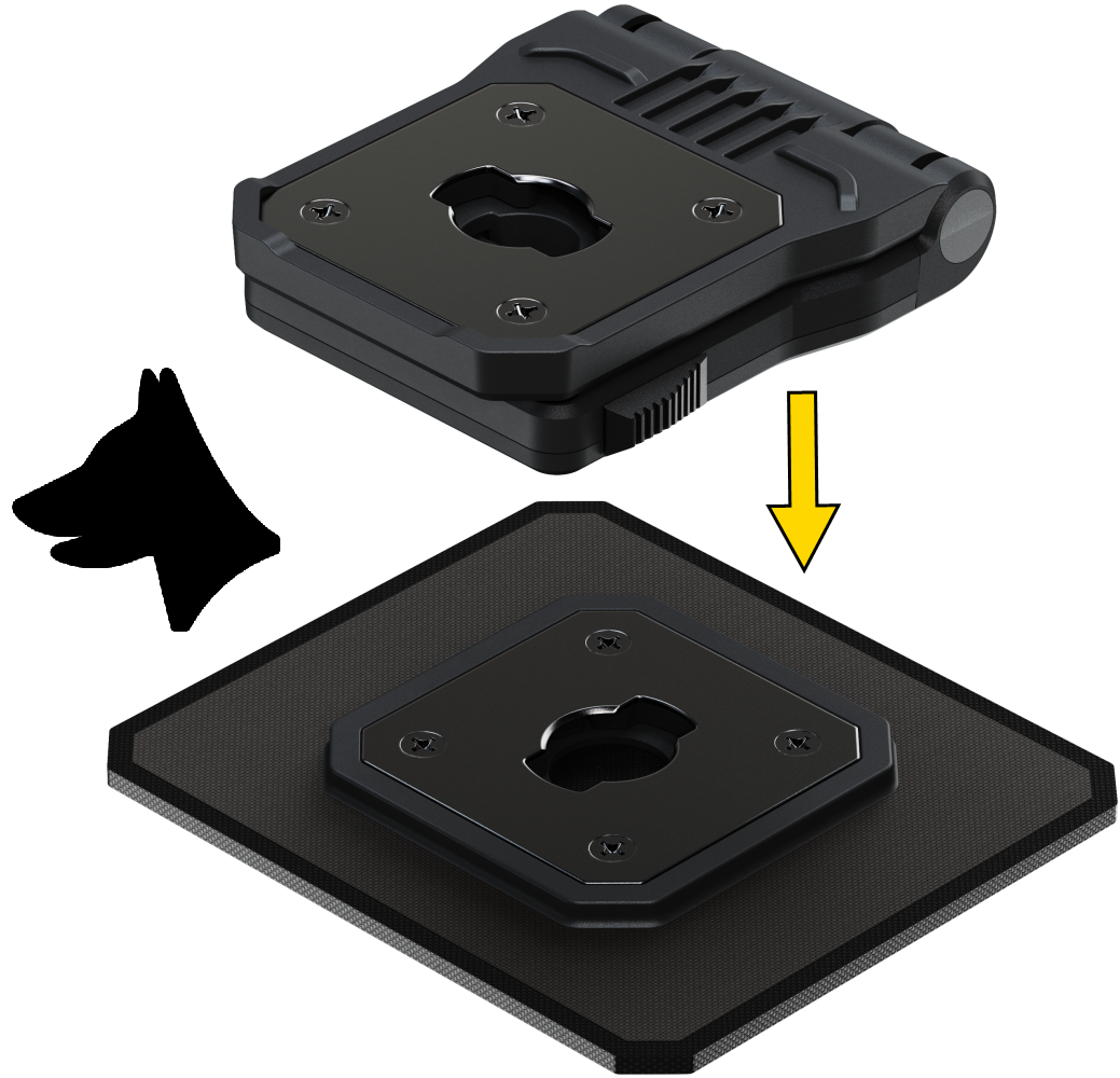 - Install a RapidLock base on the K-9 harness. In both options below, place the mount near the rear of the harness to maximize the view around the K-9’s head.