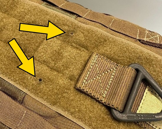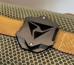 - Option 1: If the harness is equipped with a Velcro surface, place the Velcro mount (purchase separately) on the harness in the orientation shown.