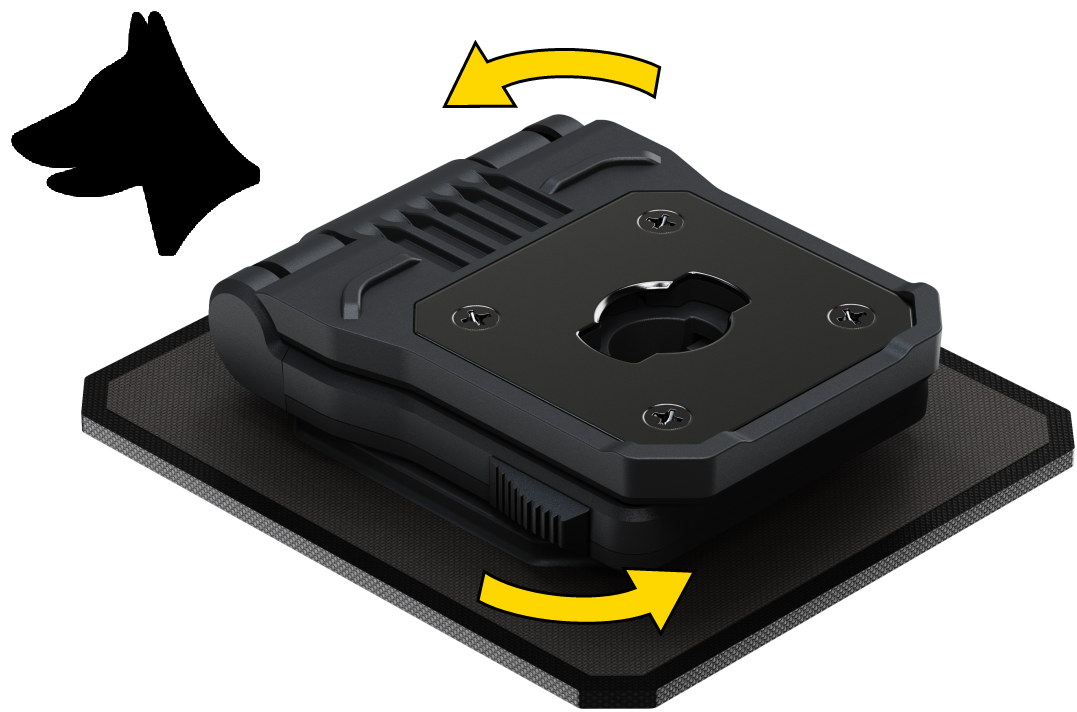 - Install the body camera on the K-9 mount in the same way. You can rotate and remove the K-9 mount from the base with the camera still attached.