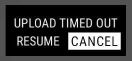 If the upload takes longer than two hours (which may occur if wireless coverage is poor and/or the file size is large), the upload pauses. Select to RESUME or CANCEL the upload.