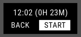4. If there is a recording on the device, the top of the screen shows its start time followed by the duration in parenthesis. Use the volume buttons to select either BACK (upload nothing) or START (uploads the last saved recording), then press Select. You can only upload the most recent recording.