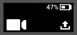 The display returns to its normal view of showing if the camera is Ready or Recording, along with the upload icon Shows the previously described icon. at the bottom right.