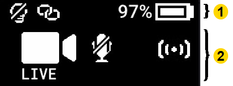 USERID123 User/Badge ID – Displays right after docking, when the camera is charging, for 10 seconds after undocking, and when no other activity is in progress. n/a