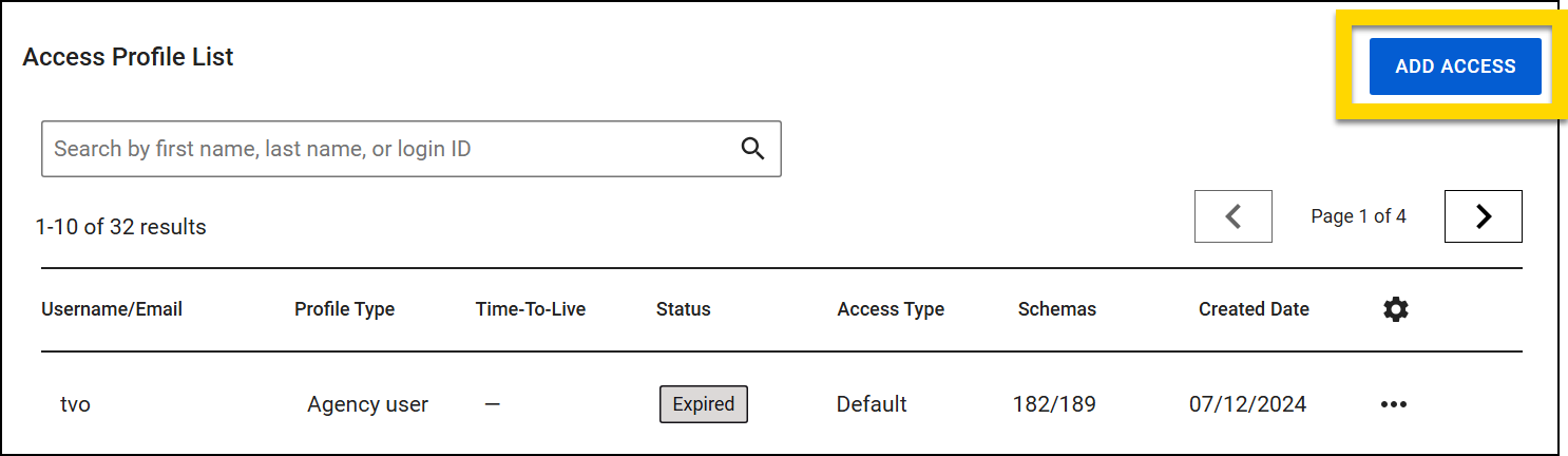 - If a profile previously had the default access profile and you add or remove access to any schemas, their access type changes to Custom.