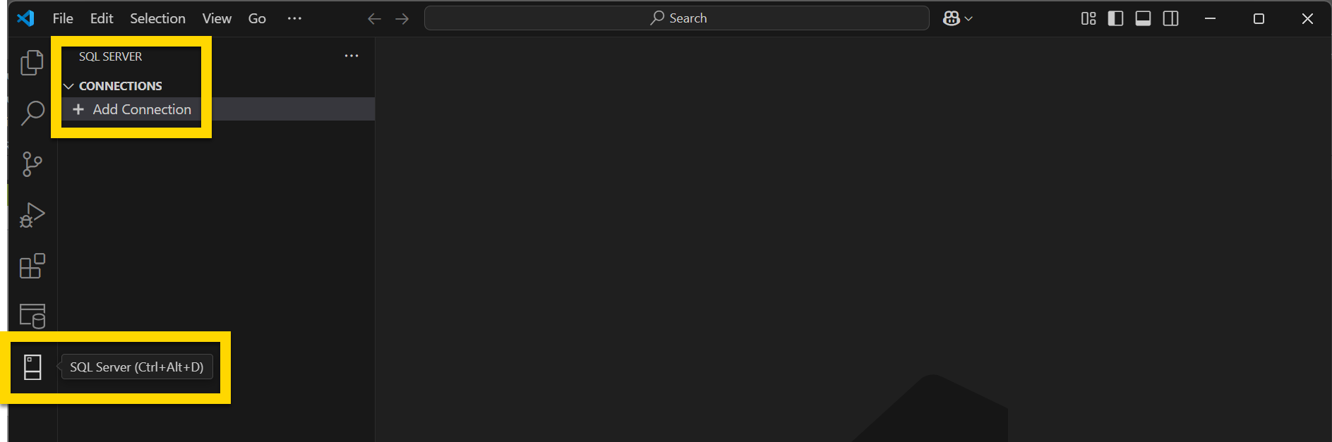 - After a successful install, SQL Server will appear as an option in the side menu. Select this option.