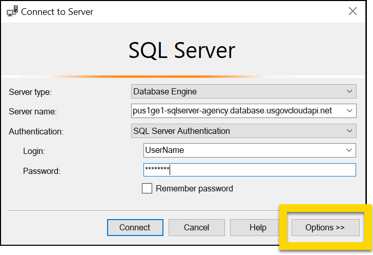 Your organization's firewall must allow outbound traffic to the Azure Gov SQL IP Ranges on port 1433.