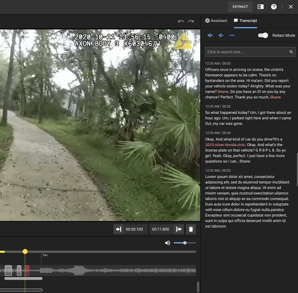 The Audio Extraction functionality lets you extract a redaction as audio evidence in M4A format with no associated video.