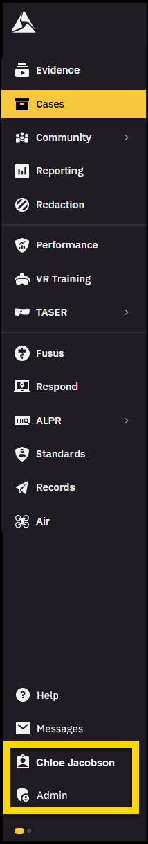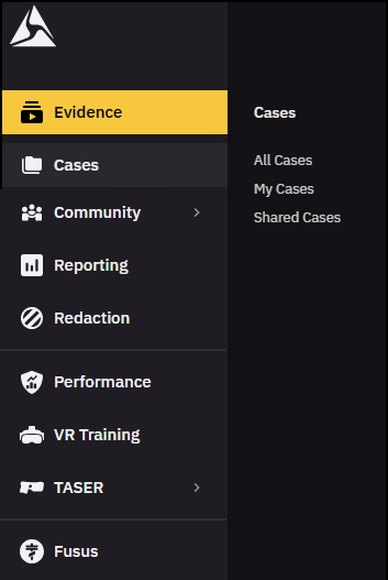 The sidebar gives you quick access to every part of Axon Evidence. You can switch to a compact icon-only view if you prefer a cleaner workspace.