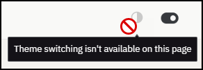 Some pages do not support theme switching. In those cases, the button will be grayed out and display the message "Theme switching isn't available on this page."