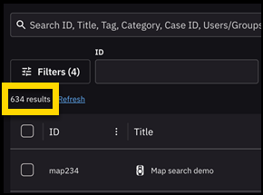 - You can switch to Map view at any time to open the map. The map displays up to 50 results within the visible area, even if your search returns more evidence. Each pin represents an evidence file with location data captured in that map view radius. You can continue applying or adjusting filers while in Map view.