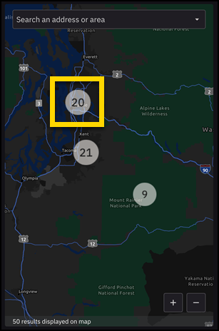 As you apply filters or zoom in, clusters automatically update and break apart into individual pins.
