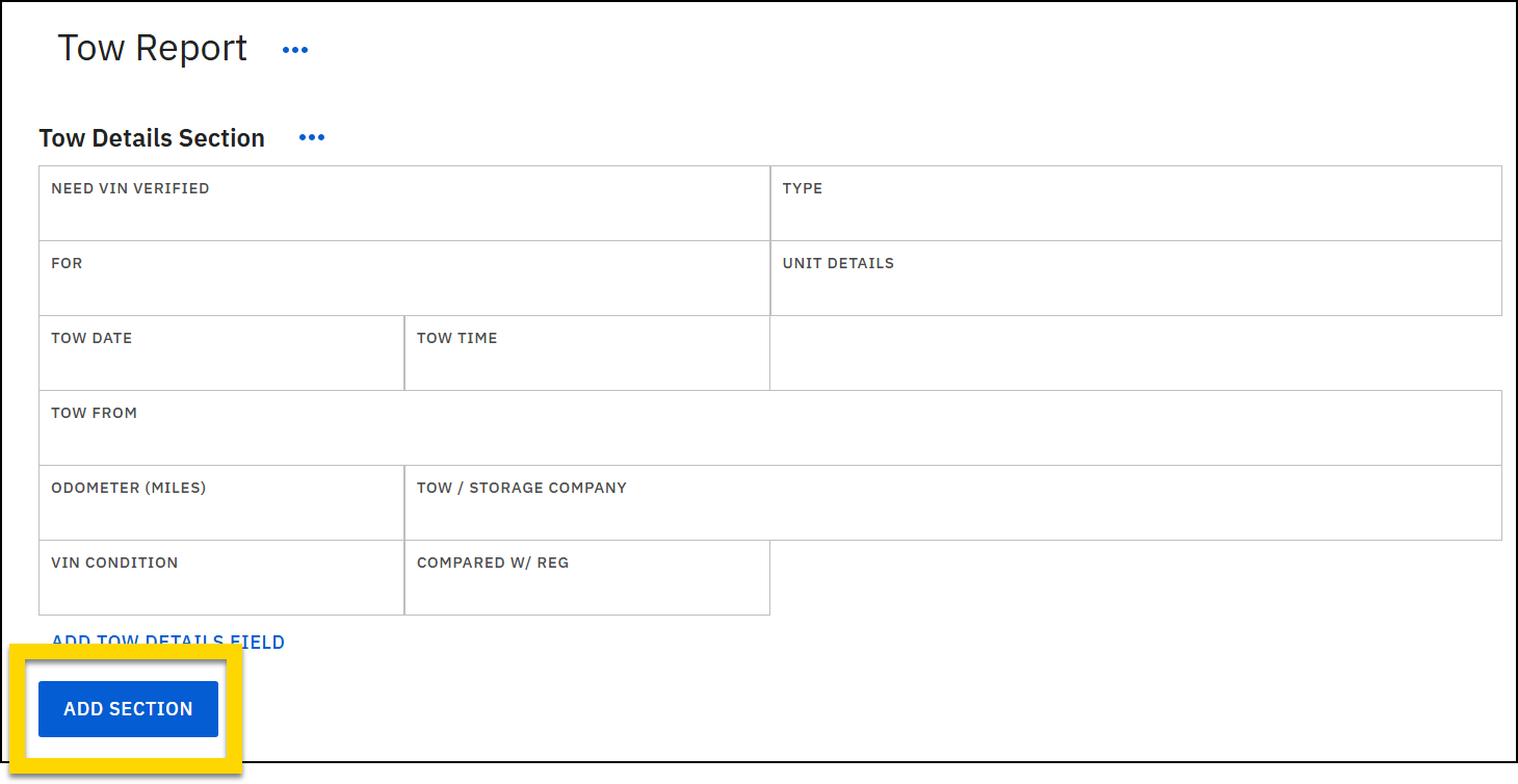 Subforms also enable separate printing of specific information. For instance, a subform for towing allows you to print the vehicle removal information without including the full incident report.