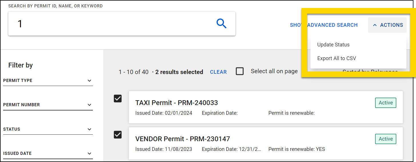 After a permit has been finalized, you can update its status. To do this for single permit: