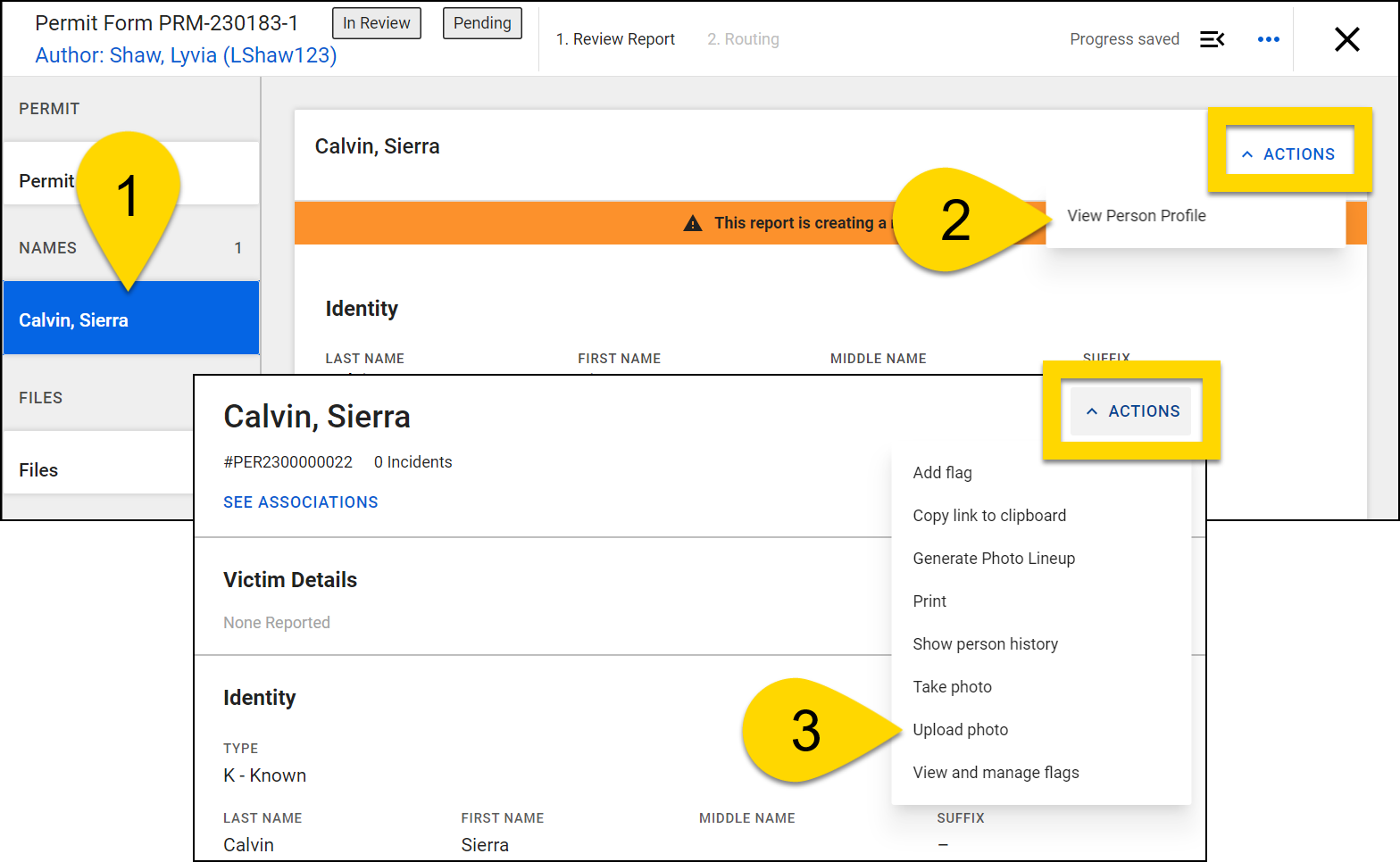If you added a new person to the Axon Records database when creating the permit, and the permit card includes a photo, you must add a photo to that person's profile before printing the photo card. You may also need to add a photo to a person's profile even if they already existed in the Axon Records database before you added them to the permit.
