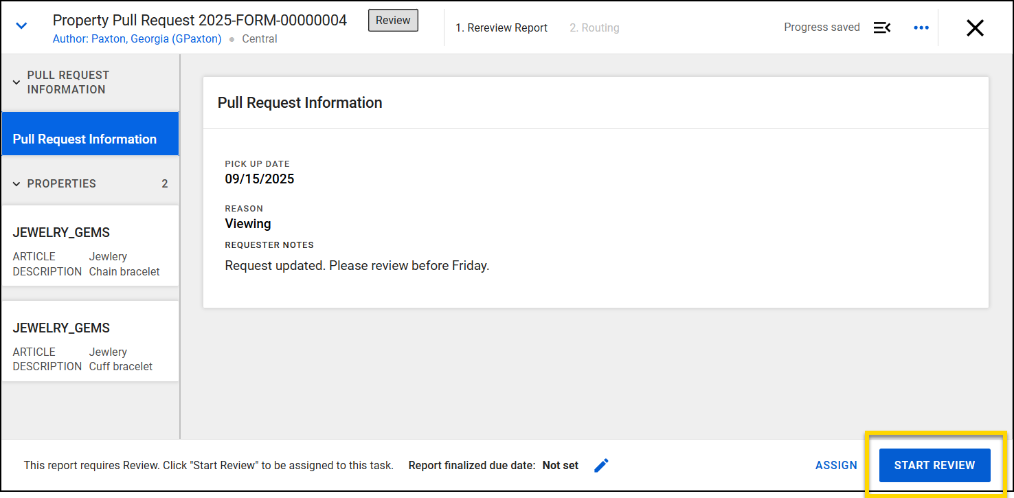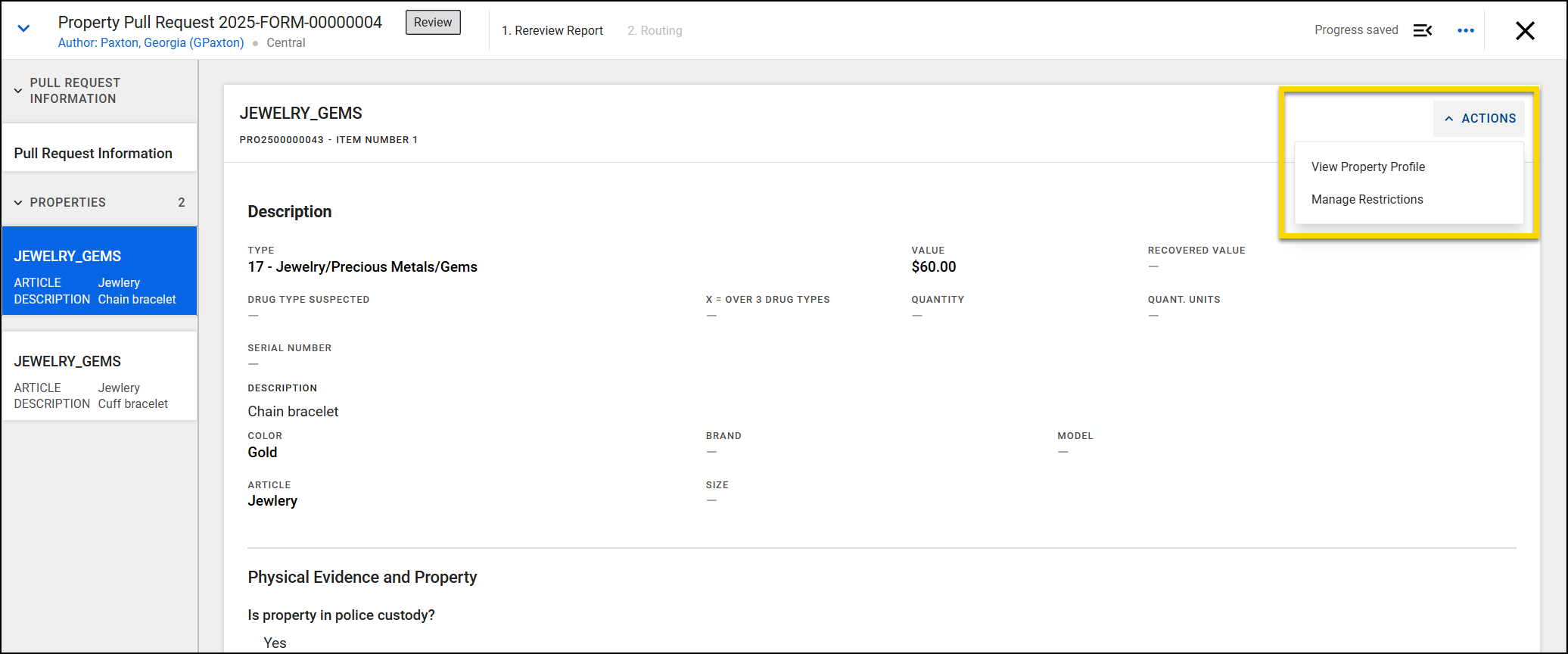 - Open the incident report that contains the property items you need to create a pull request for.