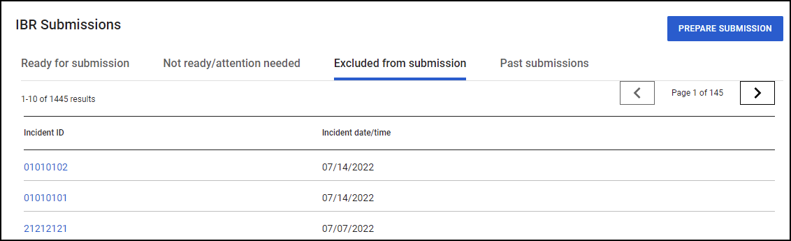 - Lists incident reports that are excluded from submission