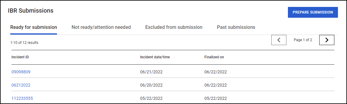 Selecting the Incident ID opens the incident report where you can make the necessary validation fixes. Once the report is re-finalized without errors, the incident will move to the Ready for Submission tab.