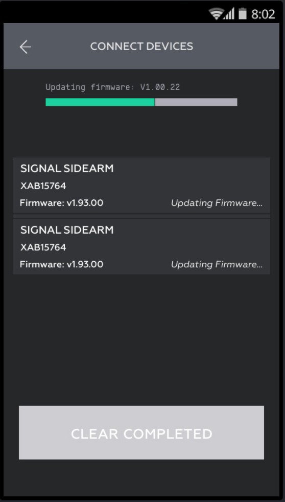 - If firmware is out of date, the update begins automatically. Monitor progress using the progress bar.