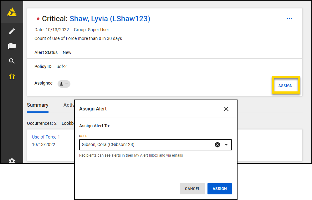 Once assigned to an alert, that user will receive an email notifying them that they have an alert to review.