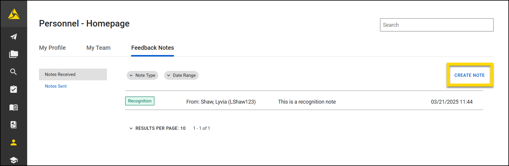 When a supervisor sends a feedback note, the recipient will receive an email notification. They can then open the note directly by using the link in the email or by navigating to the Feedback notes tab on the Personnel page.