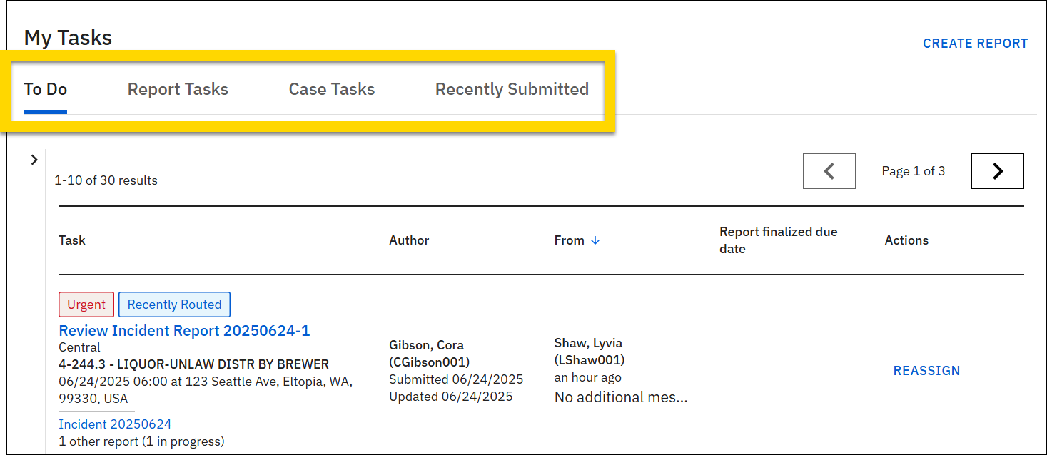 - View: Reports or case tasks that can be viewed but not edited because they are currently in review or already finalized