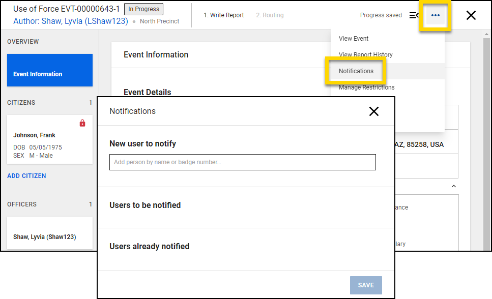 - The name(s) of officers involved in the event