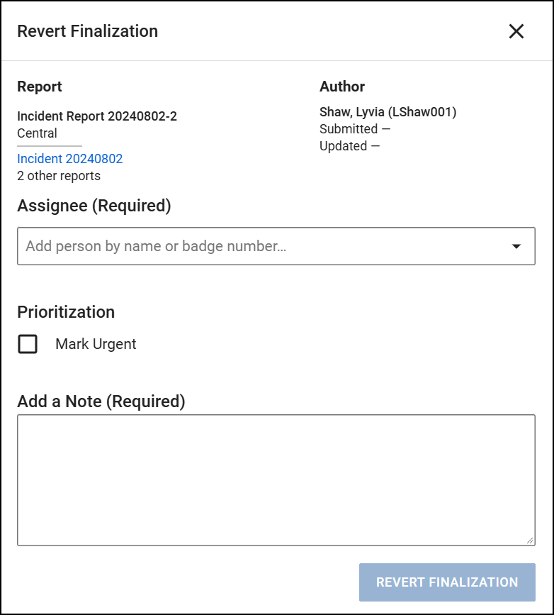 - The last person assigned to the report is auto-populated in the Assignee field.