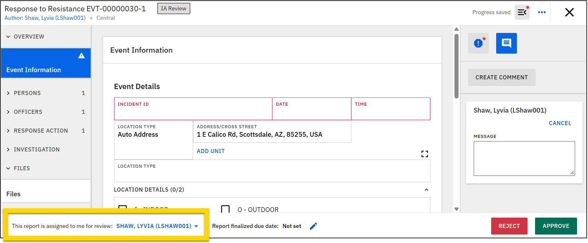 - View: Reports or case tasks that can be viewed but not edited because they are currently in review or already finalized