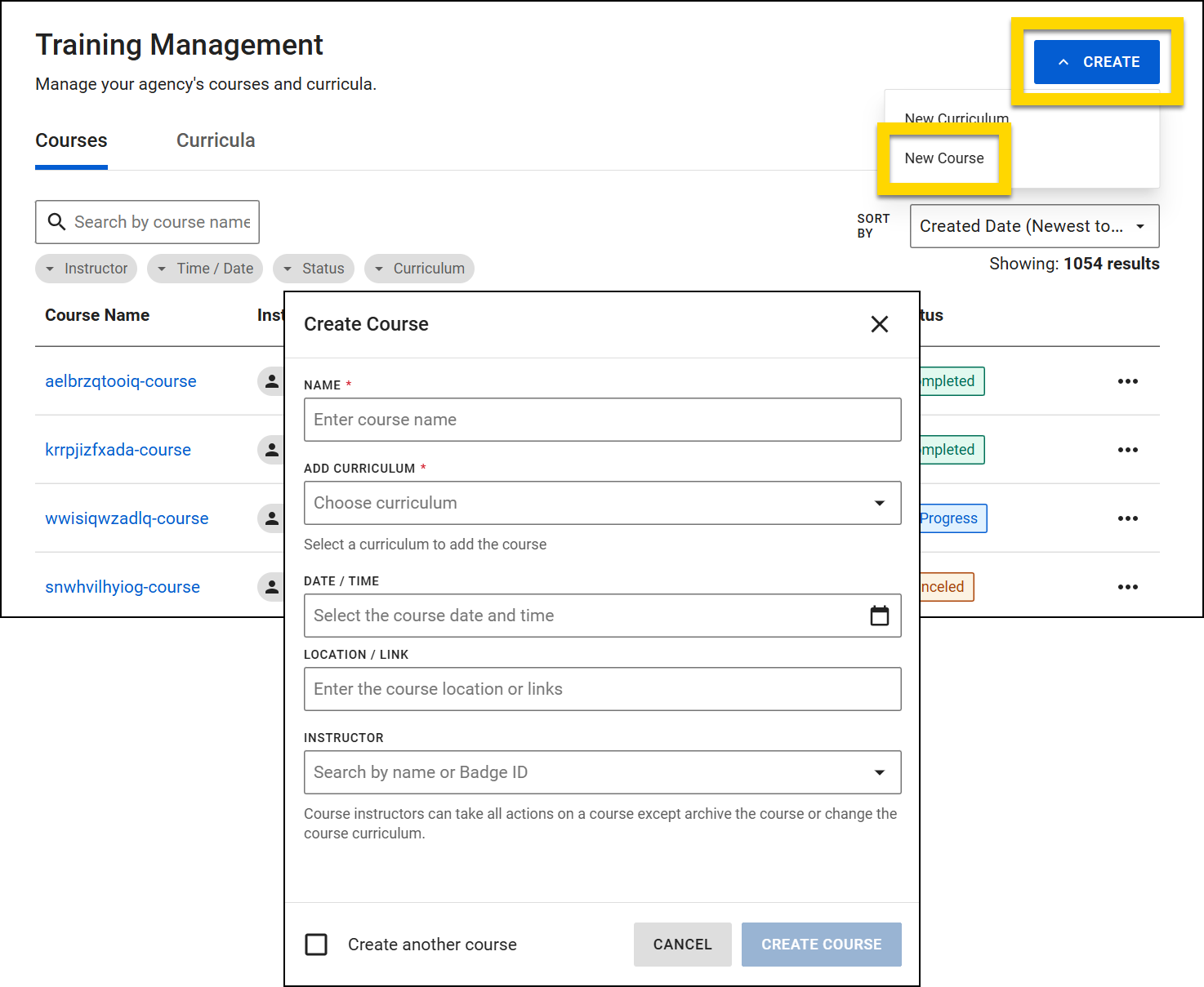 - Instructor: Assign an instructor from the list. Instructors can take all actions on a course except cancel the course or change the curriculum.