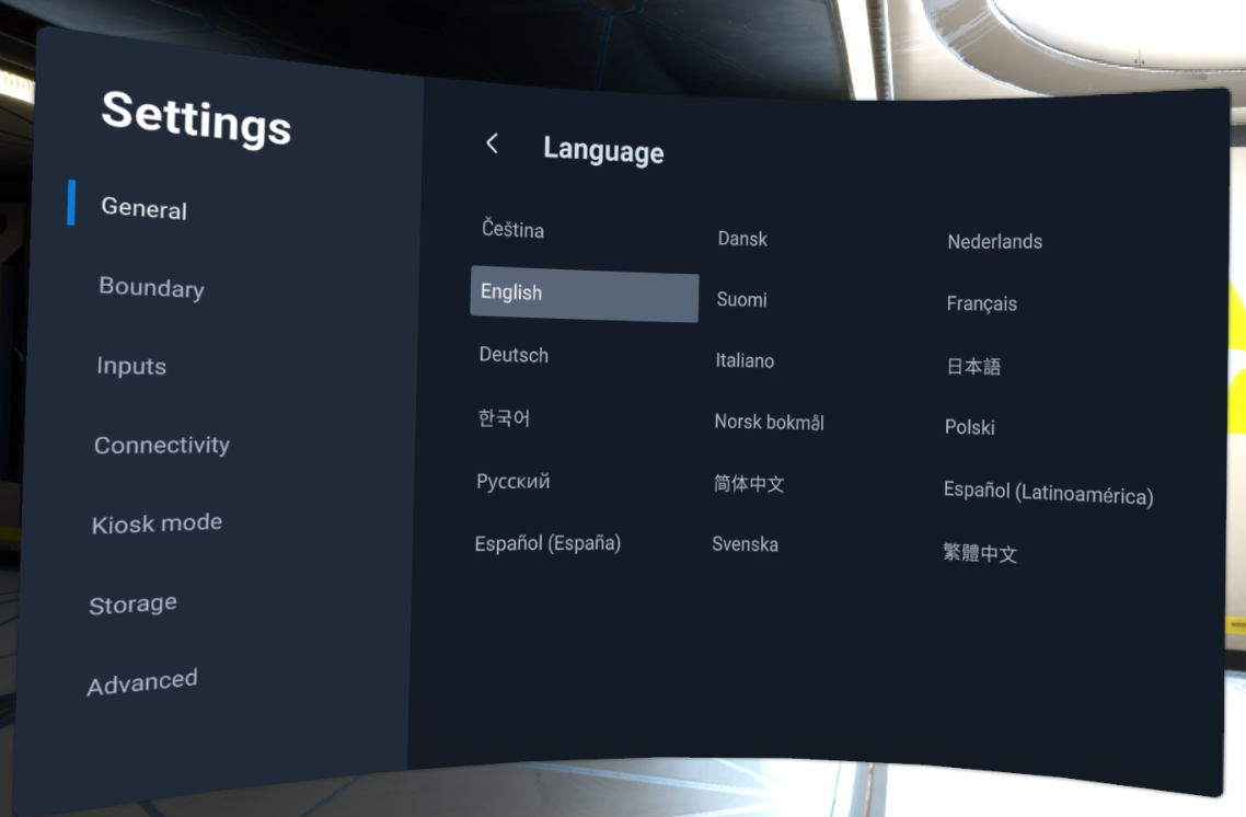 Change language on VR headset