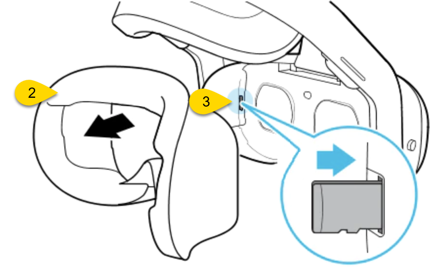 - Upon removing a microSD card, any downloaded/transferred scenarios will no longer be accessible on the headset. (Re-download, if applicable, without the microSD card in place.)
