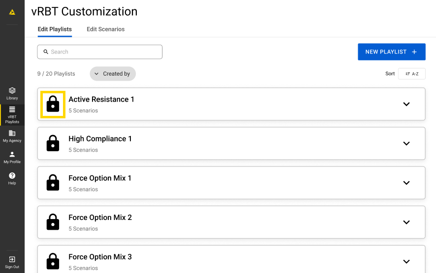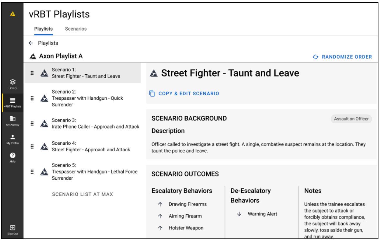 - Trainees can choose from a list of Axon pre-configured playlists.