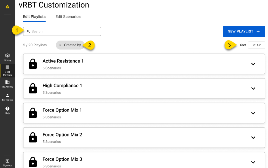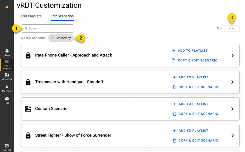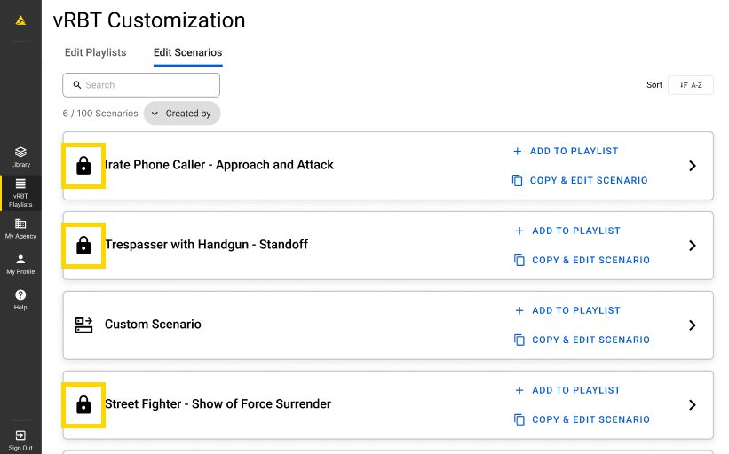 Trainers must be signed into the same account they used to create the saved playlists and scenarios to access them.