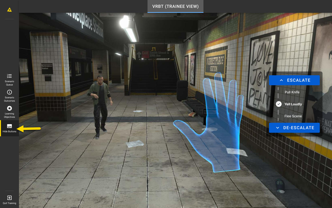 The buttons are automatically disabled during the introduction and conclusion of a scenario. They become active once the live interaction portion of the scenario begins.