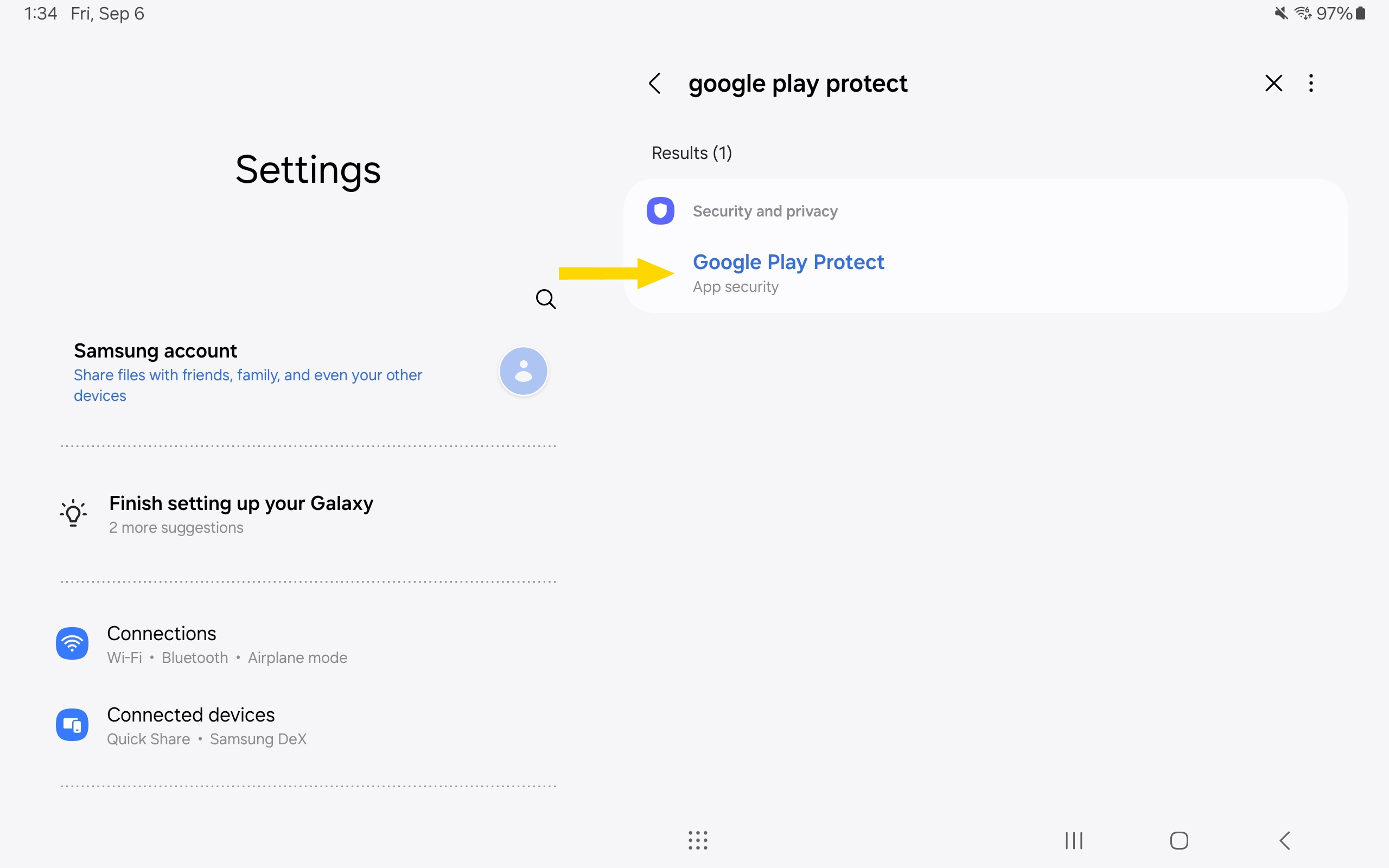 To turn off Google Play Protect from the Samsung Galaxy S7+ VR tablet settings: