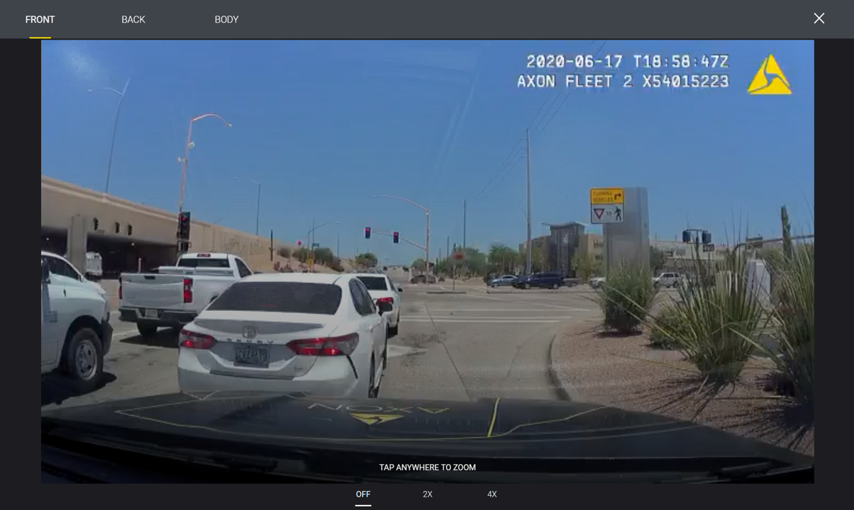 - Tap Front to see the live view from the front camera or Back to see the live view from the back camera. If View XL is paired with an Axon body worn camera, tap Body to see the live view from the paired body worn camera.