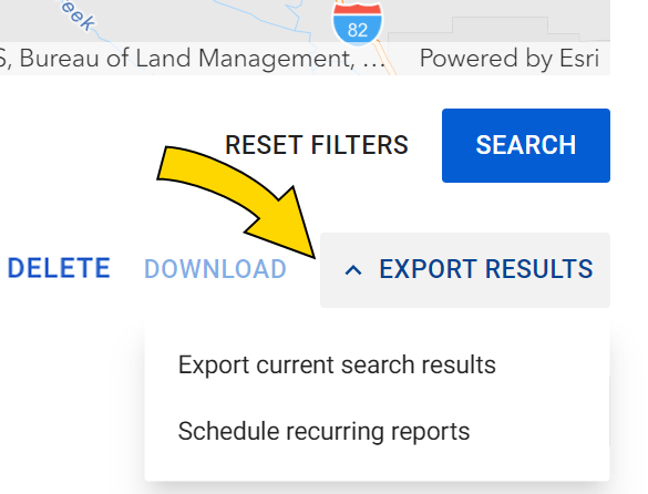 - At the bottom of the search results window, select Export Results, then Export current search results to initiate the .csv download.