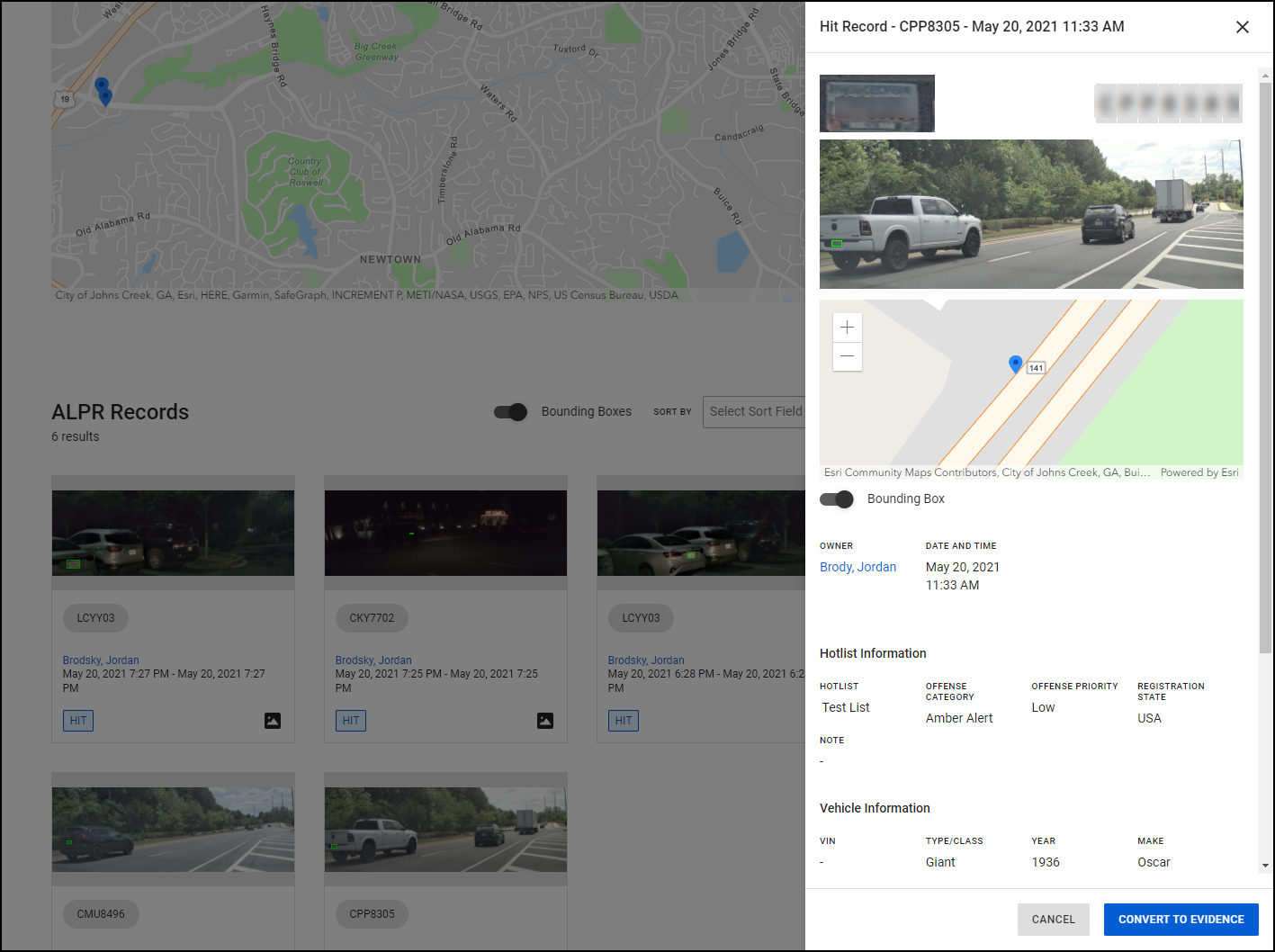 Use cases ï this topic ð Convert ALPR records to evidence