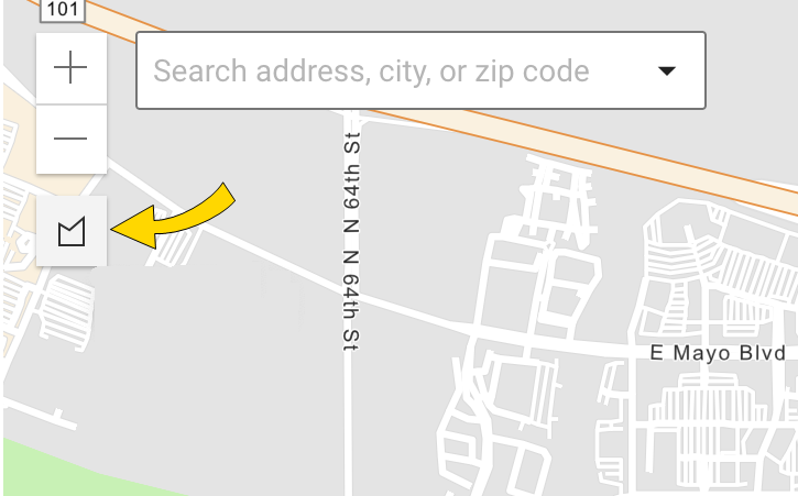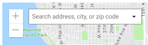 Whenever viewing the map, search a street address, county, city, or ZIP code directly from the field at the top-left corner.