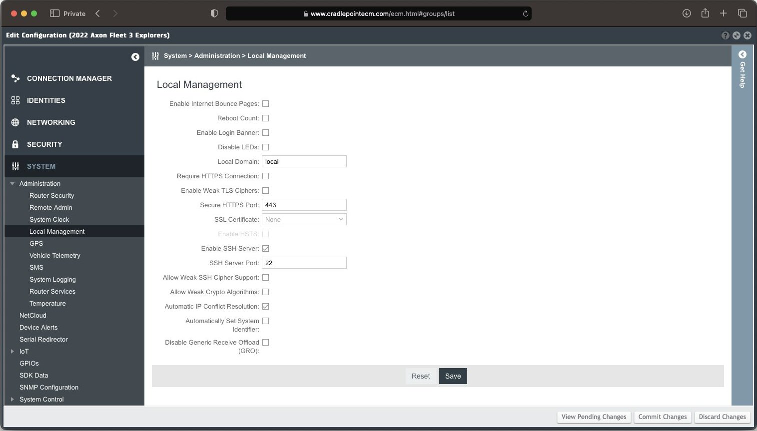 See Cradlepoint configuration on my.Axon for additional information on configuring a Cradlepoint router for Axon Fleet 3.